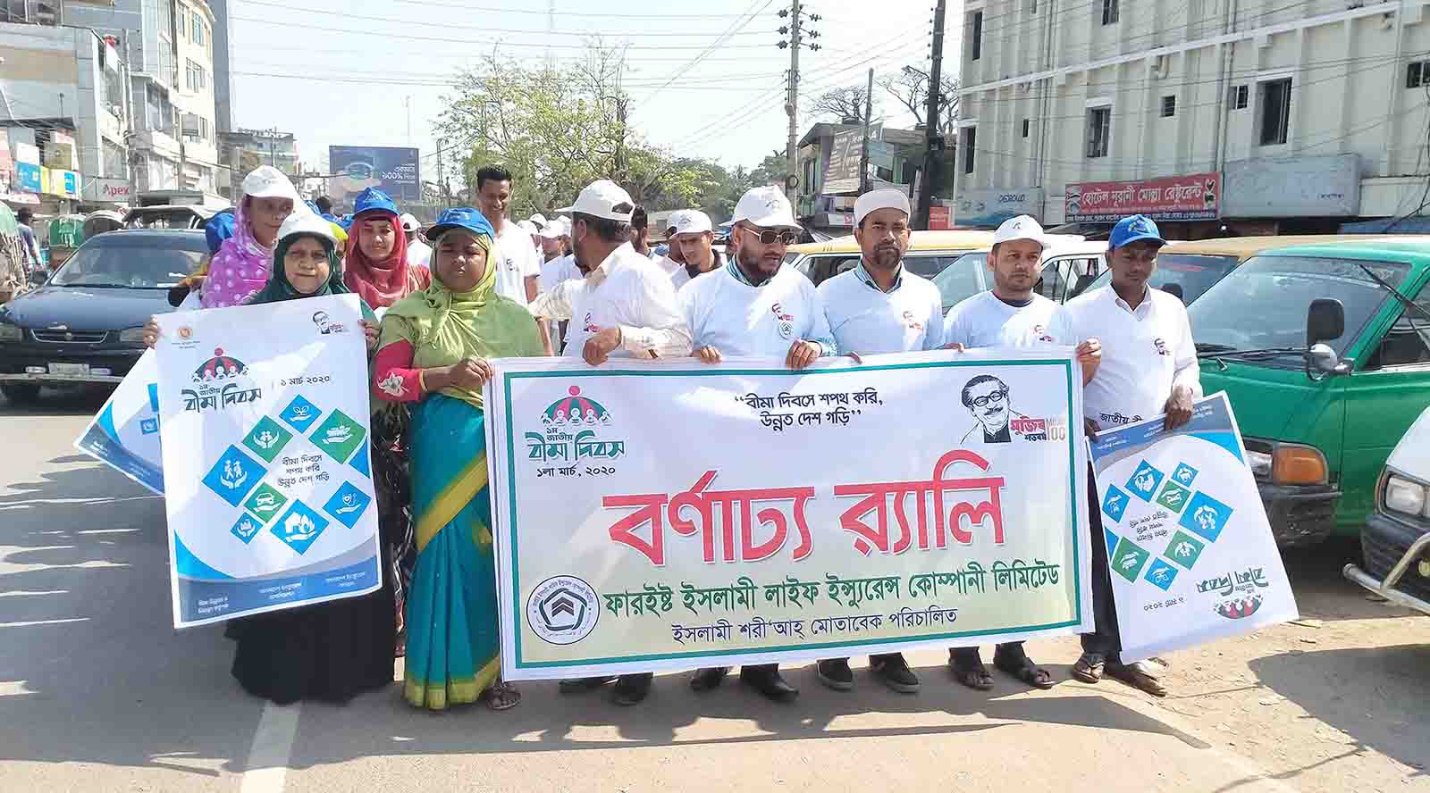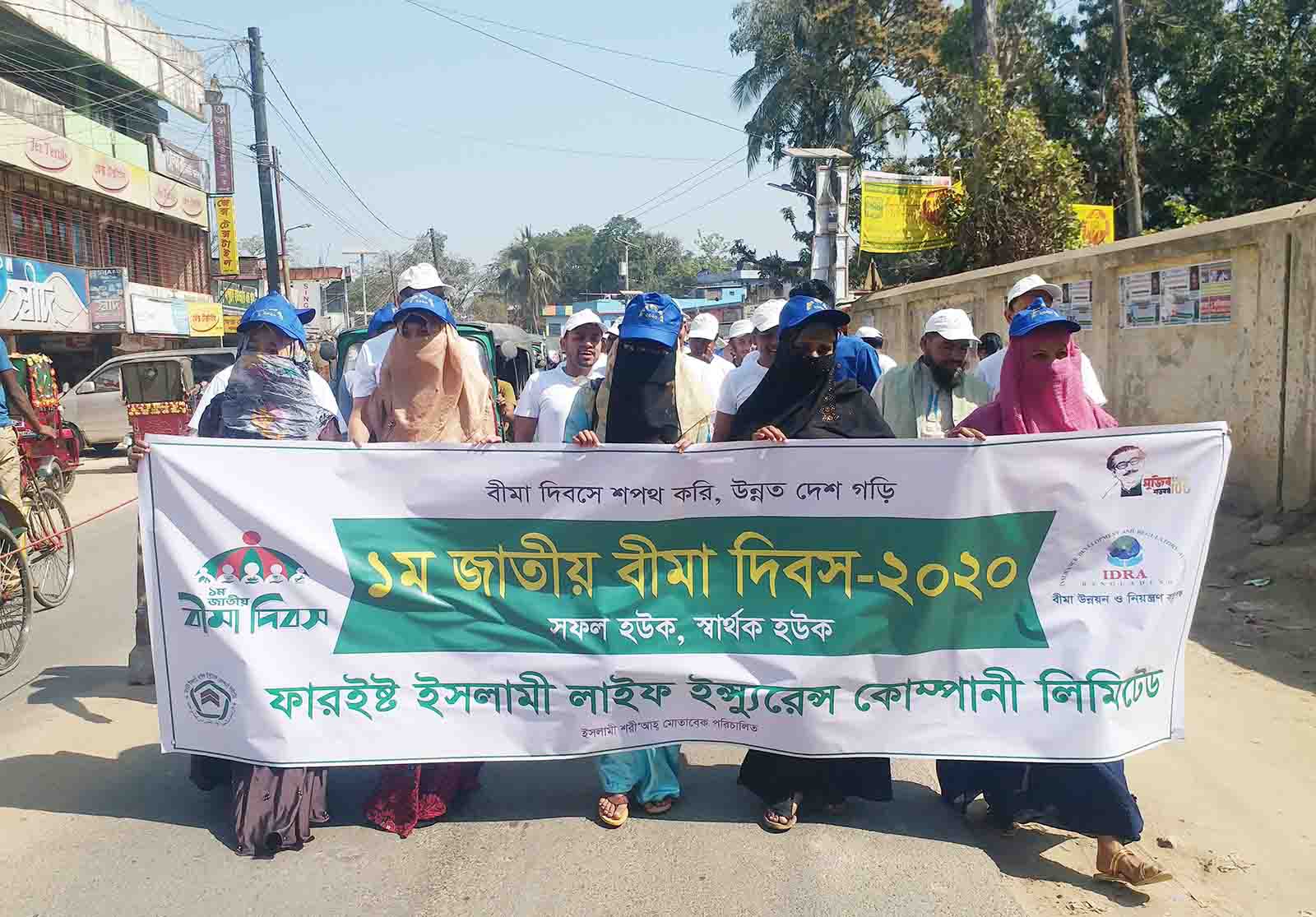 বীমা দিবস উপলক্ষে ফারইষ্ট ইসলামী লাইফ ইন্সুরেন্স কোম্পানী লিমিটেড এর কর্মকর্তা কর্মচারীবৃন্দ র্যালী করেন।