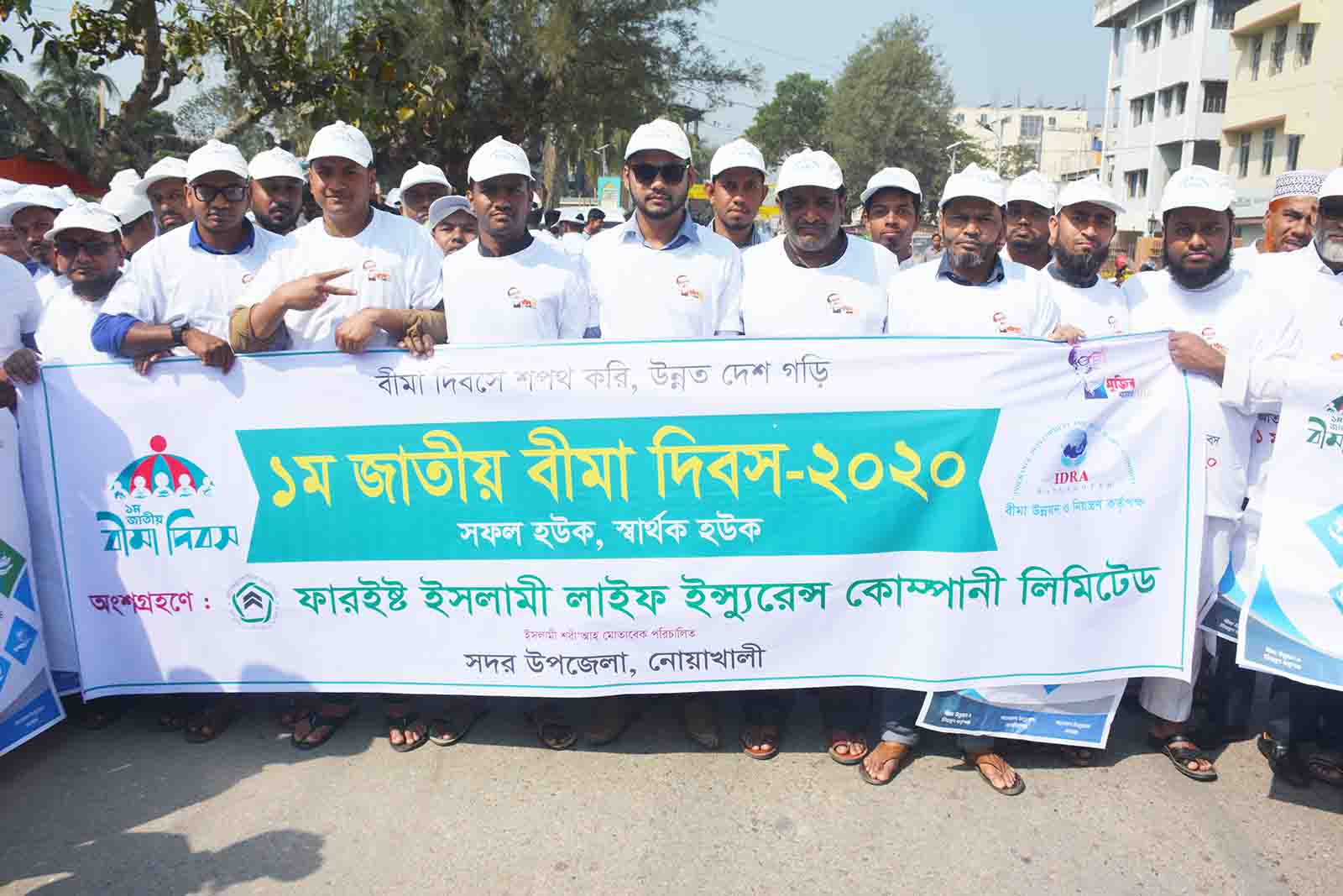 ১ম জাতীয় বীমা দিবস-২০২০ উপলক্ষে নোয়াখালী উপজেলায় ফারইষ্টের কর্মকর্তারা র্যালী করেন।